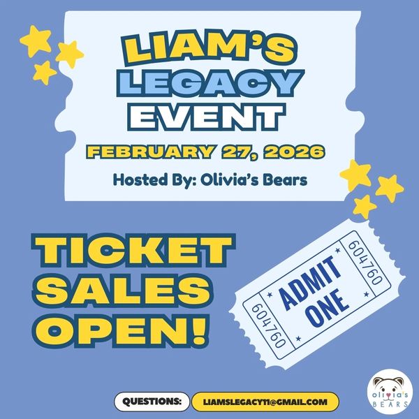 We are excited to invite you to be a part of the first annual Liam’s Legacy Event, hosted by Olivia’s Bears in partnership with the Lynch Family. This special evening will take place on Friday, February 27, 2026, at Wurlitzer Events. Join us for a night of food, music, auctions, raffles, and community.