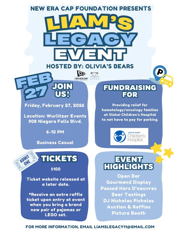 This event will honor and celebrate the life and legacy of Liam Lynch, while raising crucial funds for parking relief for hematology/oncology patients and their families at Oishei Children’s Hospital.