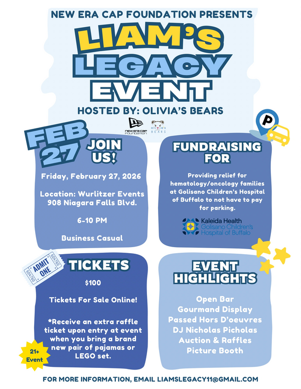 Can’t join us in person? Support families by donating to Liam’s Legacy to cover hospital parking for pediatric oncology & hematology families at Oishei Children’s Hospital.