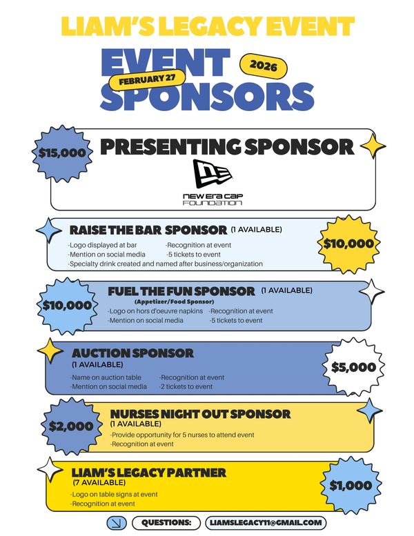 Email the team at liamslegacy11@gmail.com to request the full sponsorship packet or reserve your level.